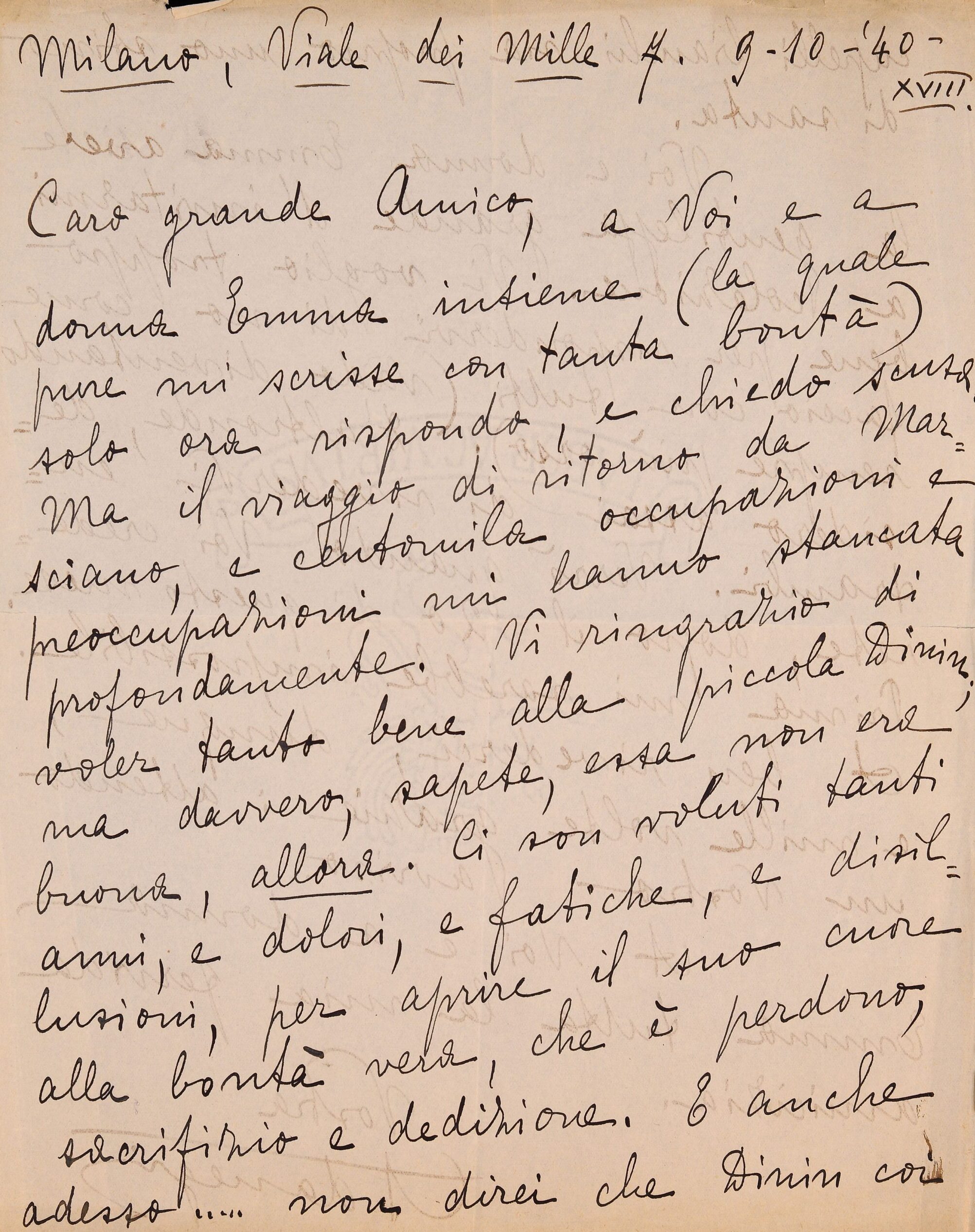 Nell’immagine: lettera di Ada Negri a Guido Pesenti (1940).